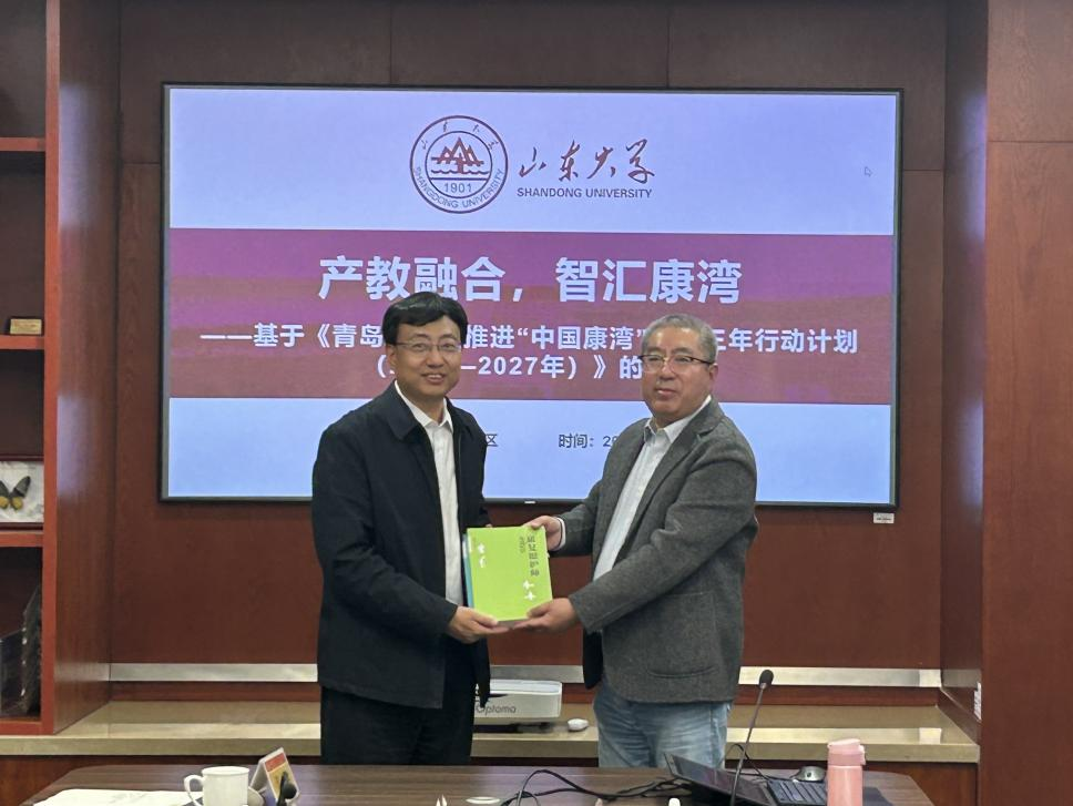 10月23日下午,“产教融合,智汇康湾——基于《青岛市加快推进‘中国康湾’建设三年行动计划(2025—2027年)》的专题座谈会”在山东大学青岛校区顺利召开。本次座谈会特邀中国医院协会医疗康复机构分会常务委员、青岛市仁者寿健康管理有限公司董事长张广善及其团队作专题报告与交流研讨。山东大学校长助理、生活质量与公共政策研究中心主任邢占军教授出席会议并致欢迎辞。山东大学生活质量与公共政策研究中心研究员武宜金、陈仁兴、李梦丹和社会保障专业博士生参与座谈。